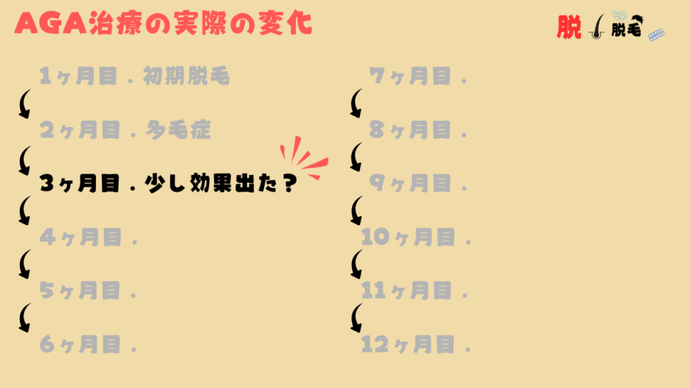 - 3ヶ月目:生え際や頭頂部に変化を実感?