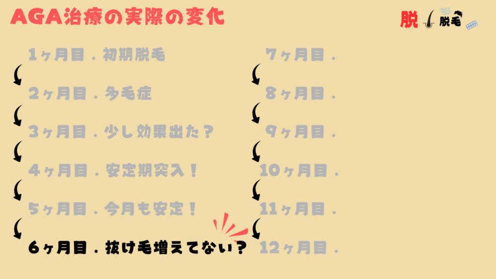 6ヶ月目終盤に掛けて、どんどん抜ける毛が増えてきているような感覚がありました。