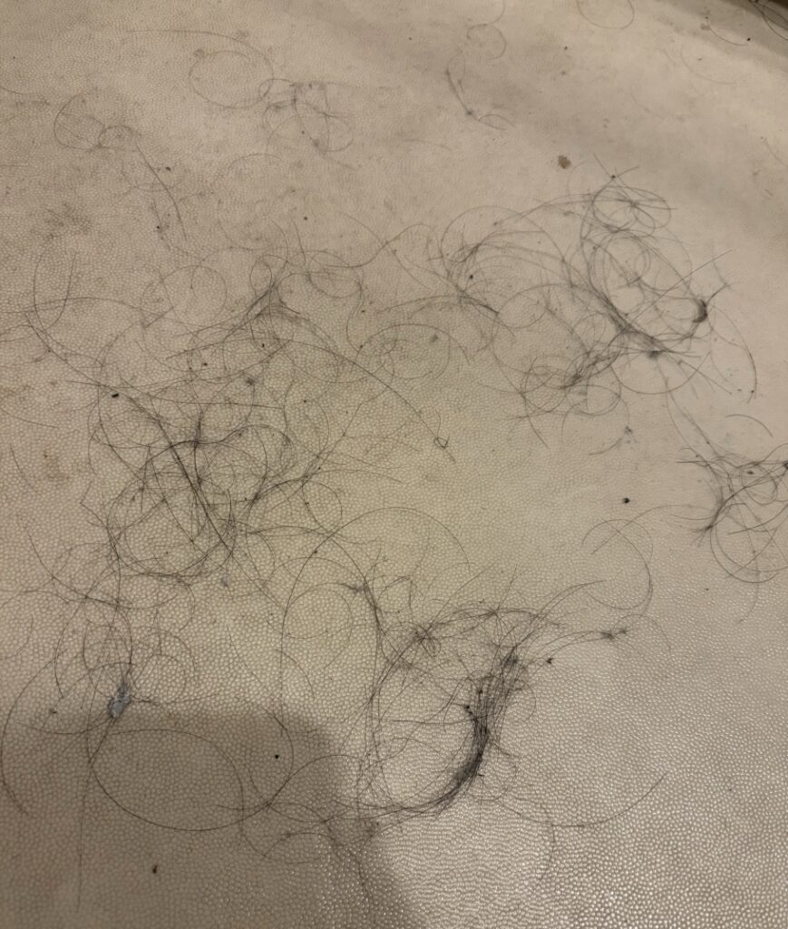 👇️こちらは初期脱毛中に床に落ちていた毛を集めたときの写真です。